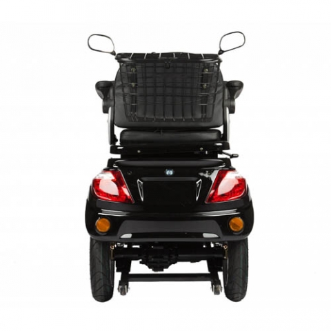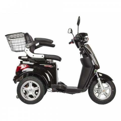 Электроскутер-трайк устойчив на дороге, в отличии от двухколёсной техники. Он обладает стильным ретро-дизайном и яркой свето-оптикой.