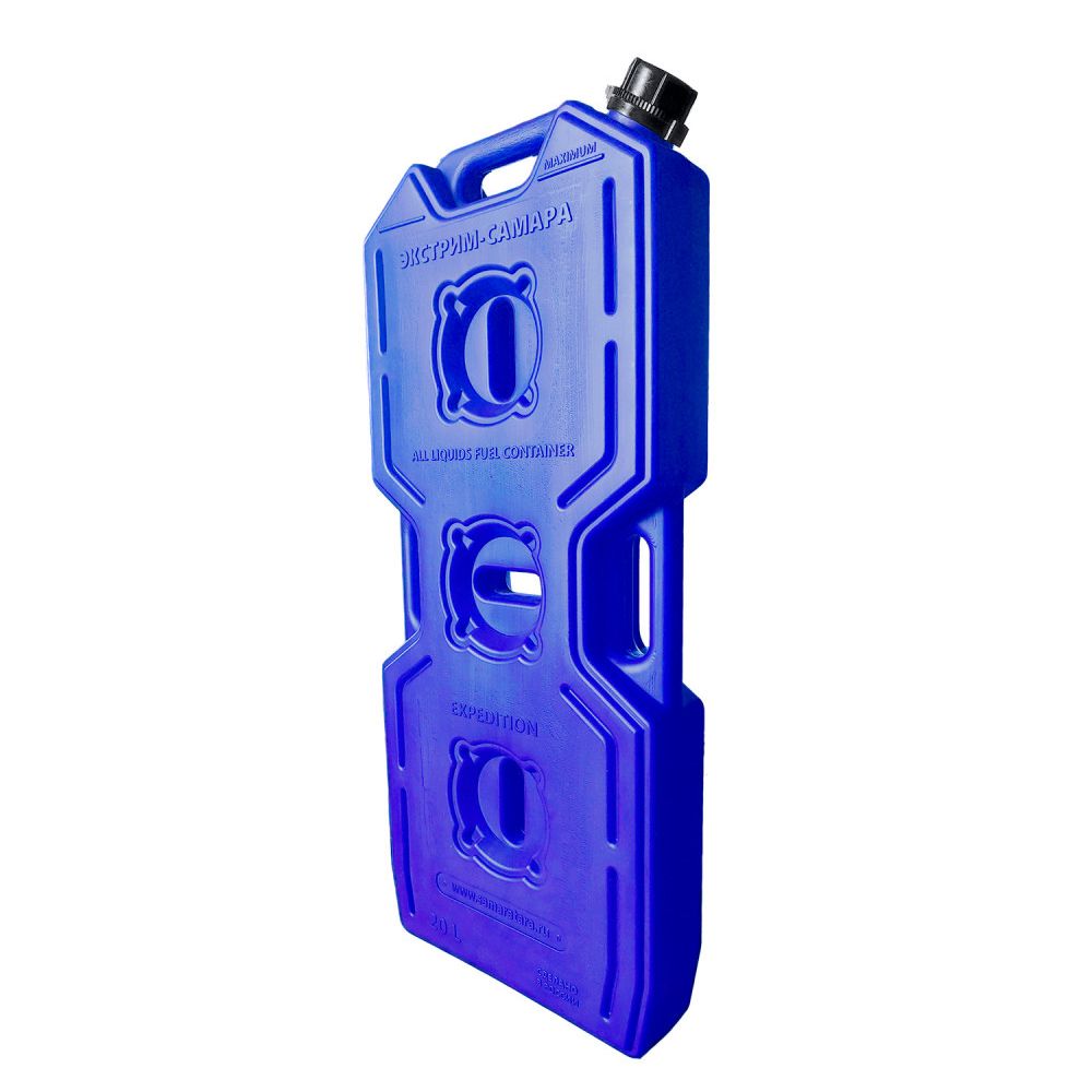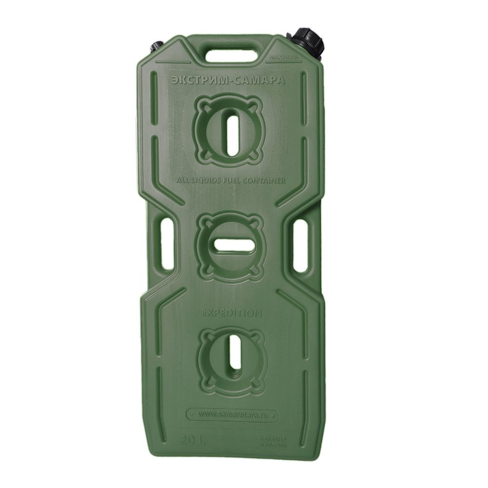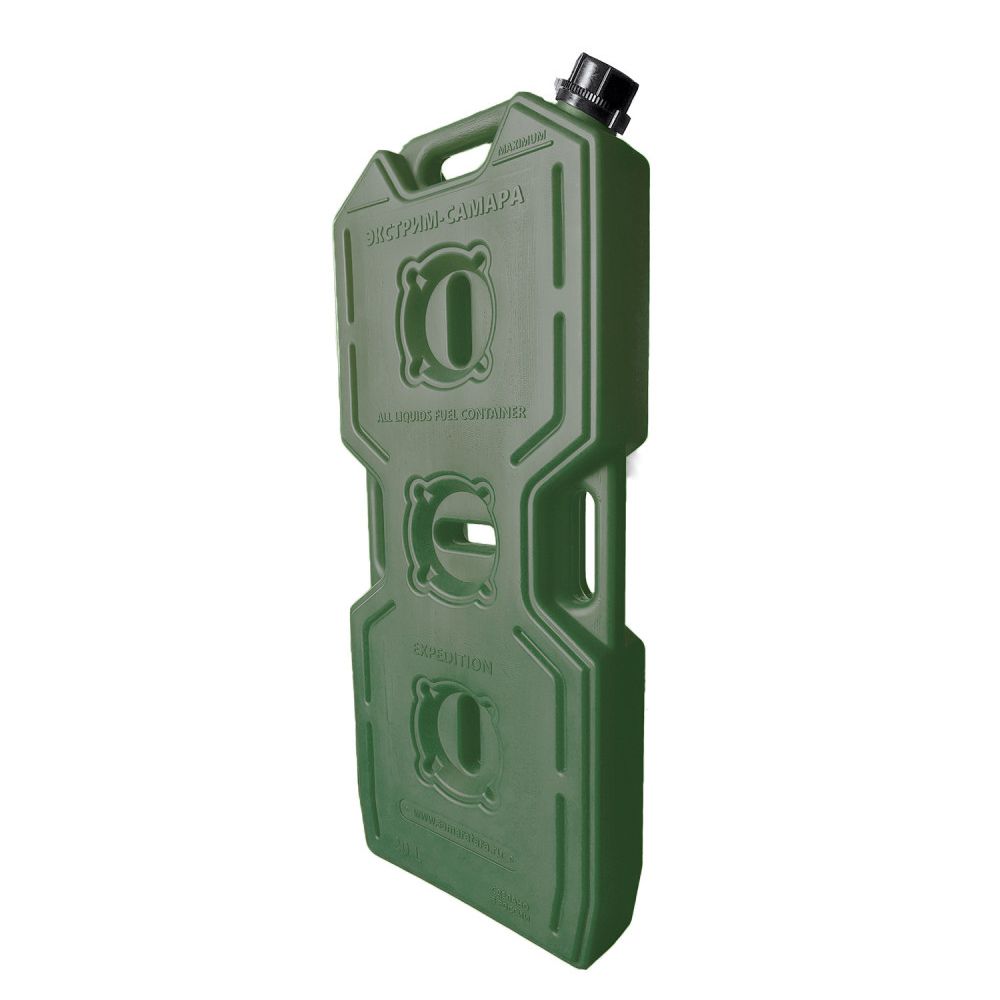 Канистра "Экстрим-Самара" полнообъемная и вмещает все 20 литров жидкости, комплектуется насадкой "Драйв", которая прячется внутрь горловины. В данной канистре усилены ребра жесткости и углы. Плоская экспедиционная канистра предназначена для транспортировки огнеопасных (бензин, солярка, масло) и пищевых (вода, пиво и другие) жидкостей. Данными канистрами могут пользоваться любители экстремального отдыха, квадроциклов (ATV), мотоциклов, снегоходов, мотовездеходов, внедорожников, а также обычные автомобилисты для хранения запаса питьевой воды. Канистры будут эффектно смотреться на любой технике. Имеет 3 крепежных отверстия и 3 ручки для переноски.
